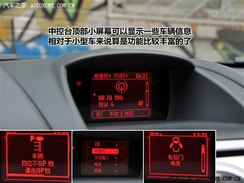 中控臺(tái)頂部的顯示屏雖然很小,但是在小型車中還是不多見(jiàn)的,而且功能也比較豐富,包括時(shí)間、音頻、車輛信息和一些簡(jiǎn)單功能設(shè)置。比如可以調(diào)節(jié)音效,收音機(jī)的選臺(tái)存臺(tái),CD播放等,基本上以音頻信息為最有用的。此外,還有車輛警示信息,比如車門未關(guān)、自動(dòng)擋擋位沒(méi)在P擋等,而且警示信息顯示時(shí)還有紅色進(jìn)度條一直在行進(jìn),進(jìn)度條結(jié)束了信息也就不顯示了。