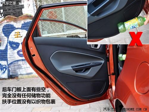 前車門板的儲物格除了放水瓶的位置不夠穩(wěn)當以外,還是非常實用的,開口寬度和深淺都很適中。而水瓶可以放在中間,前后都能分別再放個錢夾以及報紙雜志之類。我是覺得放水瓶的設計完全可以更妥貼一點,因為這個并不是難事,至少就不會讓水瓶東倒西歪了。但是,我那個已經(jīng)喜歡上新嘉年華駕駛感覺的男同事卻認為,這種功能有就行了,反正他也不會不擰蓋子就把飲料瓶放進去。