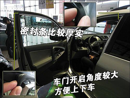 駕駛員一側(cè)車門完全打開后車門開啟角度很大,車身較高上下車都比較輕松。車門四周有橡膠密封條手觸感覺比較厚實(shí),與車門緊密貼合時(shí)能夠起到很好的密封隔音作用。