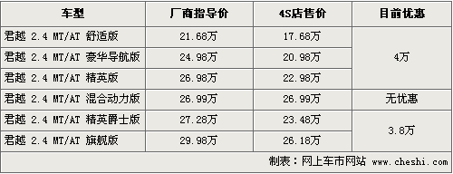 據(jù)4S店銷售人員介紹,目前購買現(xiàn)款君越全系車型可優(yōu)惠到3.8萬元,部分4S店還將贈送2000元的裝飾,優(yōu)惠累計達4萬,但混合動力版君越仍然是全款訂車或購買,沒有優(yōu)惠幅度。君越目前有黑色和同時受到眾多關(guān)注的新君越,銷售人員介紹,這款車現(xiàn)在就可以接受預(yù)訂,訂金為1000元,屆時新車到店以后,消費者如果不滿意可退還全額訂金。