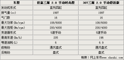 東風(fēng)雪鐵龍世嘉三廂和標(biāo)致307動(dòng)力系統(tǒng)相同,都是2.0升直列4缸發(fā)動(dòng)機(jī)并且同時(shí)運(yùn)用了電子節(jié)氣門技術(shù),該技術(shù)可以能根據(jù)駕駛員的需求愿望以及整車各種行駛狀況確定節(jié)氣門的最佳開度,保證車輛最佳的動(dòng)力性和燃油經(jīng)濟(jì)性。兩款車型的動(dòng)力輸出完全一樣,但是由于各自的整備質(zhì)量和設(shè)計(jì)不同,所以在最高時(shí)速和油耗上有所區(qū)別。兩款車型的變速系統(tǒng)均是5速手動(dòng)變速箱。制動(dòng)方式兩款車型均為前通風(fēng)盤式后實(shí)心盤式的剎車。