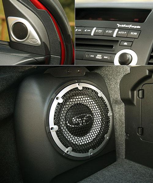 相較于在日本試駕那臺(tái)中控臺(tái)僅有置物盒設(shè)計(jì),可說是陽春到底的EVO X,國內(nèi)這臺(tái)EVO X的中控臺(tái)配備可說是豪華演出,除了有國人熟悉的Lancer車系音響模塊外,中華汽車也將Rockford Fosgate音響系統(tǒng)列入座艙配備清單內(nèi),成為少數(shù)值得拿出來特別介紹的座艙娛樂配備,這組音響系統(tǒng)含四門揚(yáng)聲器、兩顆高音揚(yáng)聲器與行李箱重低音揚(yáng)聲器在內(nèi),總共有多達(dá)9聲道(雙前門為雙揚(yáng)聲器設(shè)計(jì))。