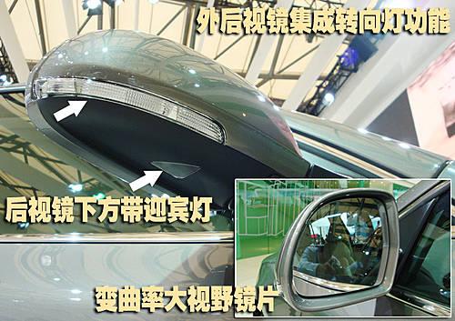位于兩側(cè)外后視鏡的設(shè)計(jì)融合了時(shí)下高端車型的諸多元素,例如帶有側(cè)面轉(zhuǎn)向燈功能以及可以在夜晚照亮車門下方的迎賓燈功能,變曲率的大視野后視鏡在車內(nèi)的觀察效果非常好。