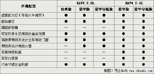 2009年4月10日,以先行進(jìn)口引入中國(guó)最終在國(guó)內(nèi)實(shí)現(xiàn)本地化生產(chǎn)的豐田RAV4,正式登陸中國(guó)汽車市場(chǎng)上市銷售。準(zhǔn)備購(gòu)買這一車型的消費(fèi)者,在面對(duì)著這一擁有2.0L與2.4L兩種排量共計(jì)10款車型,售價(jià)從18.98萬(wàn)元至26.43萬(wàn)元的國(guó)產(chǎn)RAV4,難免會(huì)看得眼花繚亂不知從何下手“十選一”挑出一臺(tái)適合自己的新車。通過(guò)對(duì)以下國(guó)產(chǎn)RAV4十款車型配置差異的解析,或許您會(huì)找到答案。