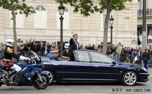 法國總統(tǒng)薩科齊的座駕是一輛豪華版標(biāo)致607,全車超過5米,配備由鋼板和玻璃材質(zhì)組成了自動折疊車頂。這輛專門為總統(tǒng)設(shè)計的標(biāo)致607 Paladine在法國Cerizay的埃利茲(Heuliez)工廠誕生。