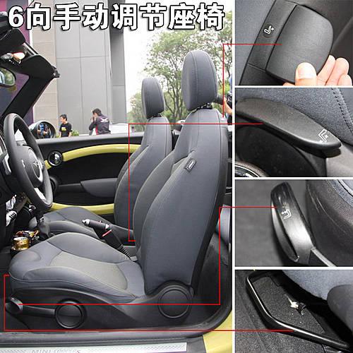 新一代Mini Cooper和Mini Cooper S敞篷版座椅根據(jù)車主的個(gè)性選擇,分為織物和真皮兩種材質(zhì)。多達(dá)6向的手動(dòng)調(diào)節(jié)方式,可以讓任何一個(gè)駕駛者輕松找到適合自己的坐姿。而扳動(dòng)前排椅背上的扳手,可以放到和移動(dòng)前排座椅,方便后排乘員進(jìn)出。