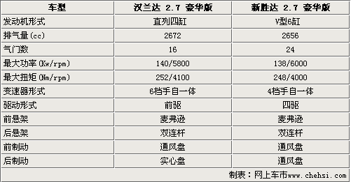國產(chǎn)漢蘭達(dá)和新勝達(dá)的排量均為2.7這個(gè)區(qū)間,但是在發(fā)動(dòng)機(jī)形式和技術(shù)上卻存在著本質(zhì)區(qū)別。漢蘭達(dá)的引擎為直列四缸,該發(fā)動(dòng)機(jī)配備了雙VVT-i技術(shù),實(shí)現(xiàn)了卓越的動(dòng)力輸出,同時(shí)進(jìn)一步提高了燃油經(jīng)濟(jì)性。新勝達(dá)則配備的是動(dòng)力輸出更加平穩(wěn)的V型6缸發(fā)動(dòng)機(jī)。兩款車型在動(dòng)力輸出上,漢蘭達(dá)占據(jù)了明顯優(yōu)勢(shì),這一點(diǎn)從動(dòng)力輸出上就可以明顯看出。比較遺憾的是漢蘭達(dá)2.7排量的車型都是前驅(qū),新勝達(dá)則是全時(shí)四驅(qū)。在變速器方面漢蘭達(dá)都配備的6檔手自一體變速器,新途勝則是4速手自一體變速箱。制動(dòng)方面兩款車型都是采用的前通風(fēng)盤后實(shí)心盤式的剎車。