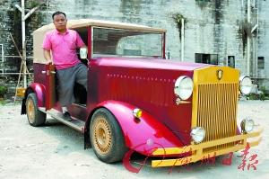 阿偉和他的山寨“勞斯萊斯老爺車”。圖/記者 莊小龍