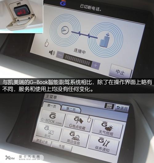 那么Remote Touch信息操作系統(tǒng)能夠控制哪些功能呢?除了常規(guī)的空調(diào)、音響、電話和導(dǎo)航等功能,之前在凱美瑞上亮相的G-Book智能副駕系統(tǒng)也被整合其中,除了在操作界面上略有不同,服務(wù)和使用上均沒有任何變化。
