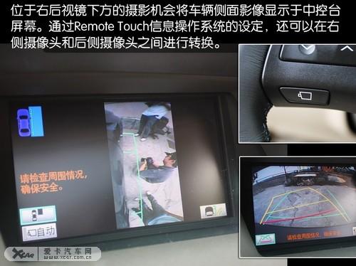 造型典雅的三輻式真皮方向盤功能不少,不僅能夠控制常規(guī)的音響和行車數(shù)據(jù)的選擇,按下左下方的車側(cè)攝影輔助系統(tǒng)開啟按鈕,位于右后視鏡下方的攝影機(jī)會(huì)將車輛右側(cè)影像顯示于中控臺(tái)屏幕,并提供廣角與輔助線功能。通過Remote Touch信息操作系統(tǒng)的設(shè)定,還可以在右側(cè)攝像頭和后側(cè)攝像頭之間進(jìn)行轉(zhuǎn)換。