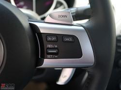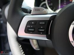 三輻真皮方向盤融合了7個(gè)多功能控制按鈕,方便Driver對不同功能進(jìn)行調(diào)節(jié)。當(dāng)然,撥片換擋這一運(yùn)動車的標(biāo)志性配置同樣出現(xiàn)在方向盤后面,左右兩側(cè)各一組,兩手同為“按減撥增”的設(shè)計(jì)方便適應(yīng)不同的駕駛習(xí)慣。