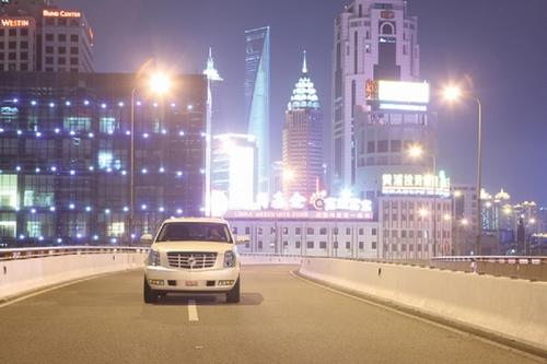 我正在駕駛一臺巨大的凱迪拉克,它的長度突破了5米,而高度和寬度都突破了2米,這讓正在我身旁的帕薩特看上去明顯比平時小了一號。帶有珠光效果的白色漆面和布滿周身的鍍鉻裝飾顯然是為了引起更好的關(guān)注度而特意安排的。這種外部裝飾效果很符合我對傳統(tǒng)凱迪拉克的定義,巨型而且總是閃閃發(fā)光,但這樣的裝備并不能將我現(xiàn)在駕駛的這臺車和一臺普通的凱雷德區(qū)別開來。