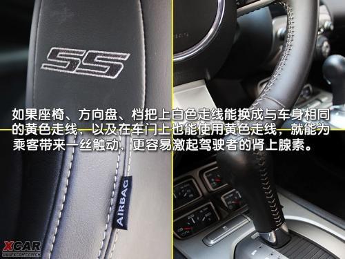 運(yùn)動(dòng)設(shè)計(jì)的三幅式方向盤造型給人力量感,銀色的裝飾很好地提升了這一效果,當(dāng)然上邊也少不了金屬字樣的SS,同時(shí)在方向盤后邊還可以看到采用左減右加式的方向盤換檔撥片。只是尺寸過大的方向盤,實(shí)在讓人感覺有些不易操控,對(duì)于大多數(shù)美國(guó)轎車來(lái)說,大號(hào)的方向盤似乎已經(jīng)成為了傳統(tǒng),一時(shí)很難改過來(lái)。