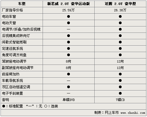 在豪華配置方面,新君威2.0T和邁騰2.0T更是不遺余力的配備各自高端配置,電動(dòng)天窗、定速巡航、電動(dòng)座椅、座椅電加熱以及分區(qū)自動(dòng)空調(diào)均稱為兩款車(chē)的標(biāo)準(zhǔn)配置。但新君威2.0T配備的電磁隨速轉(zhuǎn)向系統(tǒng),讓其整體的操控性略高于邁騰2.0T。此外,邁騰2.0T配備的電子手剎、12向電動(dòng)真皮坐椅和電動(dòng)折疊后視鏡等配置,似乎要比新君威2.0T更加時(shí)尚。