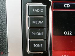 導(dǎo)航系統(tǒng)整合在系統(tǒng)之中,界面友好操作難度低,而且地圖版本較高。藍(lán)牙系統(tǒng)則需另付費(fèi)選裝單獨(dú)的模塊。如此豐富的多媒體系統(tǒng)相當(dāng)值得推薦,也難怪在小到POLO大到途銳都會(huì)將其列為高檔選裝配置,只是這臺(tái)試駕車的系統(tǒng)還未漢化。