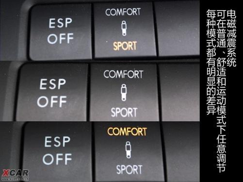 之所以美女們沒有抱怨,或許是因為我一直將懸掛模式放在舒適檔。這臺尚酷2.0TSI試駕車裝備了電磁減震系統(tǒng),可在普通、舒適和運動三種模式下任意調(diào)節(jié),每種模式都有明顯的差異,這也是尚酷在測試中取得好成績的有力幫手,這點在之后的測試篇當中會為大家詳細介紹。