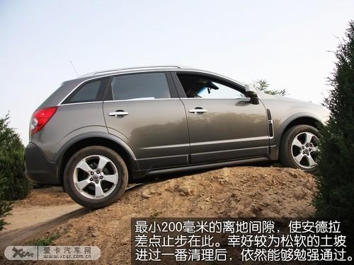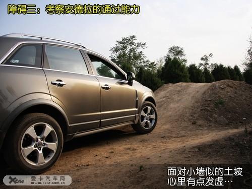 難度逐漸加大,前方陡然出現(xiàn)一座1米多高的土坡,這對于安德拉的接近角、離去角以及離地間隙將是莫大的考驗。擁有24度接近角、23度離去角和18.2度縱向通過角的安德拉,在接近土坡時還可以從容通過,但是最小200毫米的離地間隙,使安德拉差點止步在此。幸好較為松軟的土坡進過一番清理后,使安德拉能夠勉強通過。