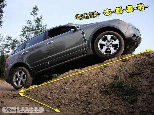 上坡容易下坡難,上坡時由于車身重心均轉移至后方,使上坡時接近角依然富裕。下坡則是另一番景象,由于車頭向下,車身重心均轉移到車頭位置,小心翼翼控制剎車,任何一個輕微的點頭,都可能減少接近角度數(shù),最終有驚無險的克服了這一障礙。