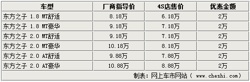 據(jù)北京奇瑞4S店銷售人員介紹,目前北京市場(chǎng)銷售的車型僅為2.0L排量及1.8L排量車型,在售的各款車型均可給出2萬元的現(xiàn)金優(yōu)惠,屬于廠家價(jià)格調(diào)整。而在各家4S店內(nèi)購車后,還可提供一些簡單的裝飾及保養(yǎng)套餐贈(zèng)送,但不可折換現(xiàn)金。