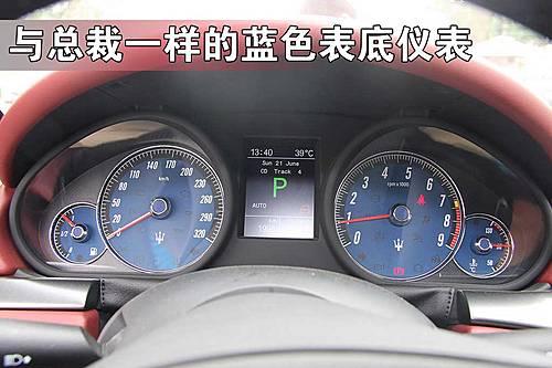 與總裁一樣瑪莎拉蒂GranTurismo的儀表盤采用的是藍色表底,白色數(shù)字非常的清晰,中央的信息顯示屏很實用,而320Km/h時刻提醒你它的能力有多大。