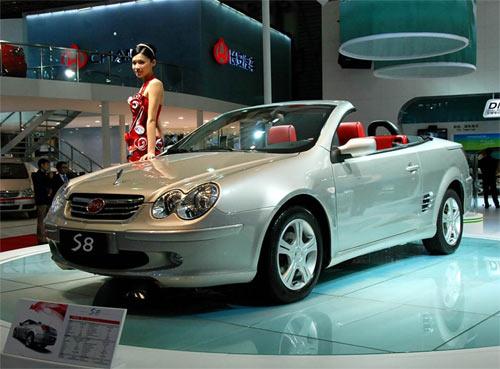 比亞迪豪華跑車S8,是我國第一款具有硬頂敞篷結構的轎車。而其敞篷關閉只需25秒。據比亞迪工作人員透露,預計售價15萬左右。