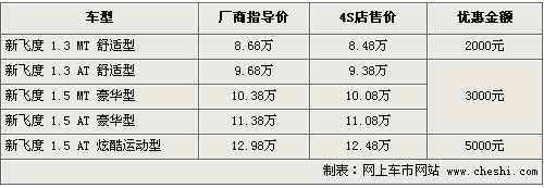 新飛度一直是AO級(jí)市場(chǎng)最熱銷的一款車型之一,動(dòng)感時(shí)尚的外觀是最大的亮點(diǎn),其次運(yùn)動(dòng)感強(qiáng)烈的內(nèi)飾方向盤(pán),頂配裝有運(yùn)動(dòng)座椅。而最值得一提的是新飛度在城市行駛具有非常經(jīng)濟(jì)的油耗,所以廣受歡迎。目前筆者從廣州本田經(jīng)銷商處了解到,新飛度現(xiàn)在最高可優(yōu)惠現(xiàn)金5000元,具體行情如下: