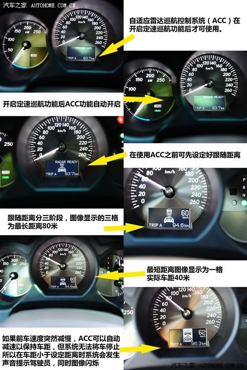 當(dāng)然,這個距離也可以在ACC開始工作以后再做調(diào)整,編輯在北京的北四環(huán)上試了試這個功能,只要該功能處于工作狀態(tài),車頭雷達是一支捕捉前方車輛并與其保持設(shè)定距離。如果前方車輛駛離原車道,雷達便會捕捉更靠前一輛車,并提速至定速巡航設(shè)定的最高速度以便盡快使車輛與前車保持設(shè)定距離。如果前車緩慢減速,系統(tǒng)會自動給車輛減速保持車距,但該系統(tǒng)是無法將車輛完全剎停的,當(dāng)雷達發(fā)現(xiàn)與前車距離小于設(shè)定距離,且自動減速的效果不好的時候便會發(fā)出警告音提示駕駛員采取措施,同時,中央顯示屏上的圖像開始閃爍。
