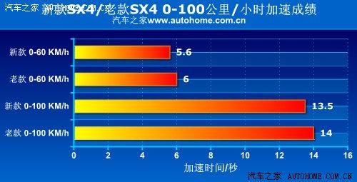 這加速測試中,新款SX4起步時對車身姿態(tài)控制不錯,1.6L AT運(yùn)動型的百公里加速最好成績?yōu)?3.5秒,比老款車型的14秒略有提升。不過從絕對數(shù)值上看,13.5秒仍是一段比較“漫長”的時間。