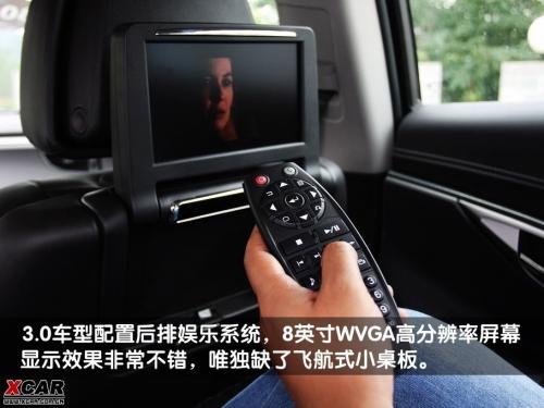 同樣只能在3.0車型上找到的配置還有后排娛樂系統(tǒng)和三區(qū)空調(diào),其兩個后排液晶屏固定在前排椅背上,不用的時候可以完全折疊起來,不影響美觀。由于采用了8英寸的WVGA高分辨率屏幕,其顯示效果非常不錯。如果搭配AV輸入和隱藏的230V電源使用,在后排玩游戲機絕對不失為商務精英們忙里偷閑的絕佳休閑方式。
