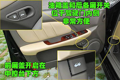 北京現(xiàn)代名馭在前排左側(cè)車(chē)門(mén)內(nèi)側(cè)設(shè)置了油箱蓋和后備廂的開(kāi)啟按鈕,傳統(tǒng)的設(shè)計(jì)都放在剎車(chē)系統(tǒng)部位,這樣更加方便平常開(kāi)啟,前艙蓋的開(kāi)啟按鈕仍設(shè)置在中控臺(tái)左側(cè)下方。