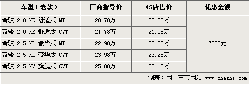 據(jù)4S店銷售人員介紹,目前奇駿2.5排量車型各款供貨都比較充足,2.0排量仍需要預(yù)訂,F(xiàn)車主要有黑色、銀色、灰色等。消費(fèi)者購(gòu)車的話可以優(yōu)惠現(xiàn)金7000元左右,其中2.0排量優(yōu)惠后售價(jià)僅為20萬(wàn)左右,性價(jià)比優(yōu)勢(shì)比較明顯。如果消費(fèi)者到店看車選購(gòu)還將有部分讓利幅度。