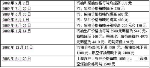 近2年成品油調(diào)價(jià)一覽