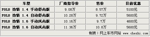 上海大眾POLO勁情——最高優(yōu)惠5600元