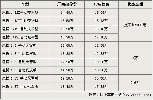 速騰全系最高優(yōu)惠1萬(wàn)元 1.4TSI加價(jià)提車