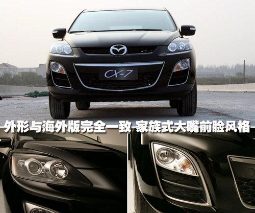 前臉采用了馬自達(dá)新一代大嘴設(shè)計(jì),較大的進(jìn)氣格柵以及更加突出的車(chē)標(biāo)。前保險(xiǎn)杠中的鍍鉻邊框使CX-7更加時(shí)尚與運(yùn)動(dòng),黑底大燈內(nèi)采用遠(yuǎn)近光分體設(shè)計(jì),近光裝備了透鏡氙燈。強(qiáng)勁有力的翼子板在車(chē)身中部得以適量的過(guò)度,其在車(chē)尾部再次伸張,配以車(chē)窗周?chē)腻冦t裝飾條,賦予了CX-7更為前衛(wèi)的定義。車(chē)身整體線條設(shè)計(jì)流暢圓潤(rùn),反光鏡集成了LED轉(zhuǎn)向燈。