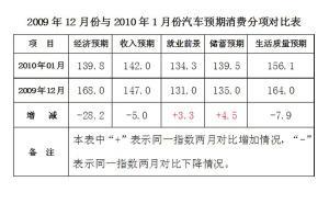 通過與2009年12月份的數(shù)據(jù)對比發(fā)現(xiàn)(見左圖),就業(yè)前景與儲蓄預期與上月相比略有上升,但幅度很小。第一個月居民對經(jīng)濟形勢的預期要比去年12月份略低28.2,說明居民對經(jīng)濟前景表明了一種較為謹慎的樂觀,尤其是進入一月份以來,宏觀政策再次調(diào)控房價,這對于很多人的經(jīng)濟預期或多或少都有影響。但從總體來看,前后兩個月的平均變化為6.7,變化不是很大。