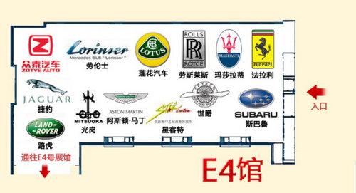 在本屆北京車(chē)展,E4館有斯巴魯、法拉利、瑪莎拉蒂、捷豹、路虎、蓮花、阿斯頓·馬丁、勞斯萊斯、世爵、光崗以及眾泰等13個(gè)品牌參展,主要亮點(diǎn)車(chē)型包括斯巴魯HYBRID TOURER概念車(chē)、法拉利599 GTO、法拉利458 Italia、瑪莎拉蒂GranCabrio、全新捷豹XJ以及勞斯萊斯Ghost等。