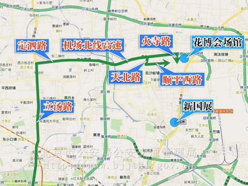 (二)由湯立路經(jīng)定泗路、機場北線高速路、火寺路出口、火寺路;或由機場北線高速路天北路出口經(jīng)天北路、順平西路至花博會場館自駕車停車場。