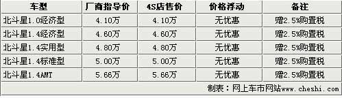 昌河鈴木北斗星作為一款適合家庭使用的小型MPV車型,在國內(nèi)深受人們喜愛。車身小巧、價格低廉,既適合家庭使用,也適合商用,北斗星成為了昌河鈴木旗下的一顆閃亮之星。近日,網(wǎng)上車市走訪了北京地區(qū)昌河鈴木經(jīng)銷商,對北斗星最新的市場情況進行了了解,具體信息請參考下表: