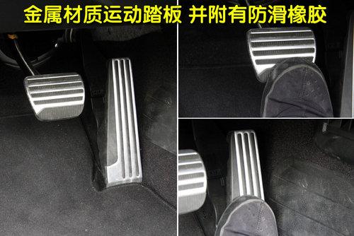 G37敞篷版車型為突出其運(yùn)動(dòng)風(fēng)格,所以離合、油門、剎車踏板外部由金屬包裹,并帶有防滑膠粒,各踏板操作行程適中、輕便。