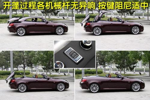 就官方數(shù)據(jù)所示,G37敞篷版開蓬僅需25秒,即可在轎跑車和敞篷車之間自在切換。開蓬按鍵周圍由金屬包裹,做工精細(xì),按鍵阻尼適中,開合中噪音極小,全過(guò)程無(wú)延遲現(xiàn)象。