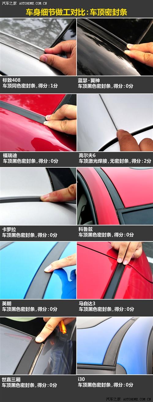 車(chē)頂沒(méi)有采用激光焊接同時(shí)只有黑色密封條的,得0分
