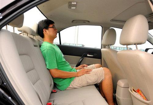 軒逸的后排腿部空間可謂是真正的跨級水平,身高180cm以下的人都可以輕松翹起二郎腿,在這點(diǎn)上速騰和馬6都望塵莫及,加上軒逸柔軟、舒適、寬大的真皮座椅,坐在軒逸上面真的很容易讓人犯困。不過需要指出的是,軒逸的車身寬度是三車當(dāng)中最窄的,當(dāng)它的后座擠滿三位乘客時(shí),后排空間就略顯局促了。