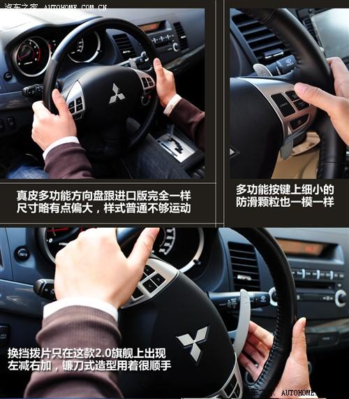 除了這兩樣標準配置以外,翼神還有兩個亮點,第一個即高配車型上的儀表盤,中央顯示屏色彩相當炫目,非常漂亮!不光是視覺效果好,可以顯示的行車信息也是相當?shù)呢S富,可謂應(yīng)有盡有;第二個則是換擋撥片,在2.0升旗艦版車型上面提供了與進口Lancer EX相同的撥片,而且在實際使用中的反應(yīng)很靈敏迅速。不過要想真正追求駕駛樂趣,顯然手動擋車型才能滿足。換擋行程很短,有一定的吸入感,既緊湊又不會生硬,這種感覺對于年輕人來說肯定夠誘惑,雖然說這款來自愛信的變速箱并不像CVT一樣是進口的。
