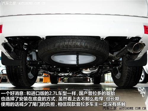 在輪胎和備胎方面,普拉多仍然堅(jiān)持使用鄧祿普的GRANDTREK系列輪胎,只不過(guò)花紋從老款的AT20升級(jí)到AT22。另外,新款普拉多有備胎外掛和底盤內(nèi)藏兩種版本,外掛顯得很彪悍,但長(zhǎng)時(shí)間使用的話會(huì)引起尾門的變形,從而產(chǎn)生噪音和密封性的問(wèn)題,這點(diǎn)老款普拉多車主經(jīng)常抱怨,當(dāng)然好處是車輛有足夠的位置設(shè)計(jì)副油箱,從而增加續(xù)航里程。進(jìn)口和國(guó)產(chǎn)的新款普拉多選擇了將備胎隱藏在底盤下面的版本。