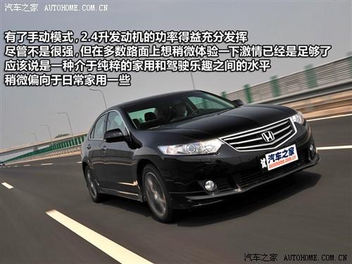 有了手動模式,2.4升發(fā)動機(jī)的功率得益充分發(fā)揮,盡管不是很強(qiáng),但在多數(shù)路面上想稍微體驗(yàn)一下激情已經(jīng)是足夠了,應(yīng)該說是一種介于純粹的家用和駕駛樂趣之間的水平,稍微偏向于日常家用一些。