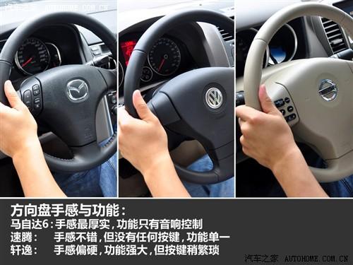 總的來說,作為頂配車型的軒逸具有的舒適性配置更高,特別是帶有倒車影像和DVD播放的中控臺彩色大屏顯得很有吸引力,而無匙啟動也十分上檔次。速騰的配置也要比馬自達6更豐富一些,特別是安全配置一直是他的強項,而尺寸更大、級別更高的馬自達6在這方面的確沒有優(yōu)勢,不過話說回來,馬自達6的舒適性配置對于日常駕駛來說已經(jīng)完全足夠。