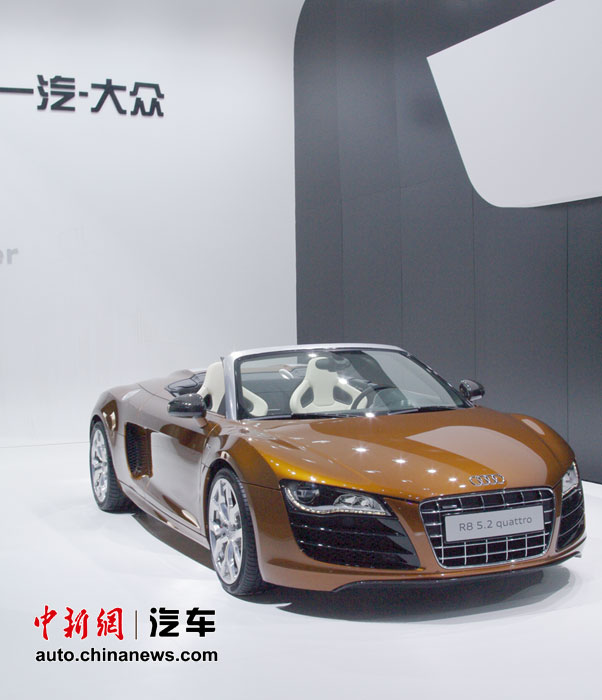 在人流如織的海外汽車巨頭的展館里,天價(jià)豪車成了當(dāng)仁不讓的最搶眼明星,相形之下即使再靚麗的車模也黯然失色。圖為奧迪 R8 5.2 Quattro