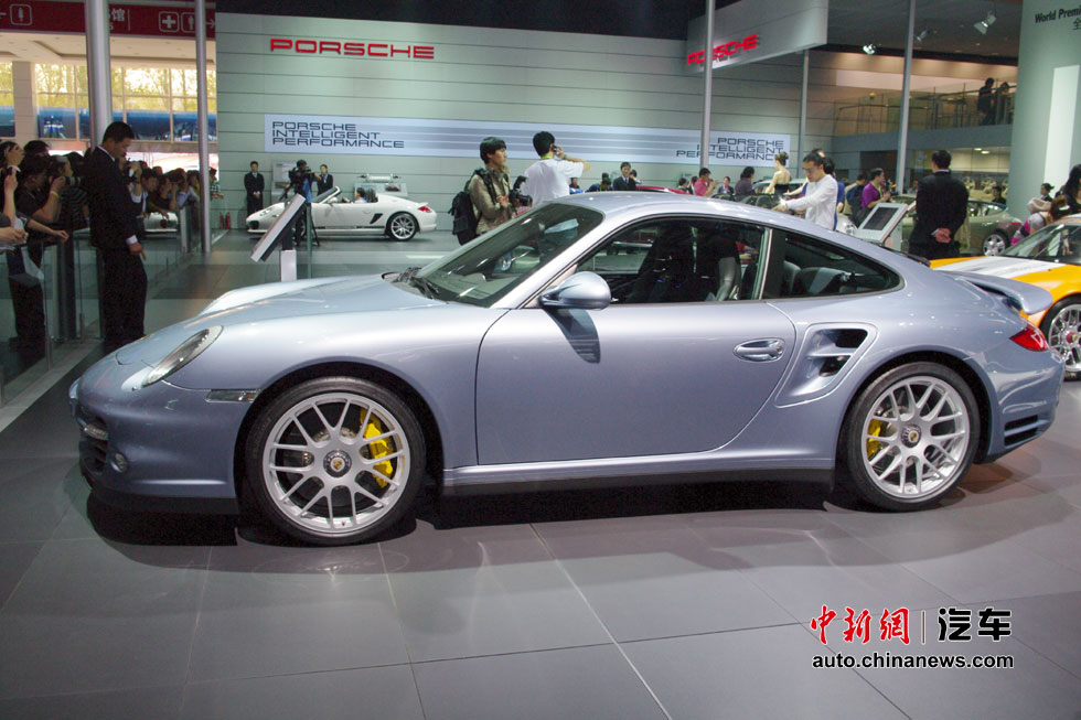 在人流如織的海外汽車巨頭的展館里,天價(jià)豪車成了當(dāng)仁不讓的最搶眼明星,相形之下即使再靚麗的車模也黯然失色。圖為保時(shí)捷911 Turbo S