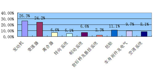 引發(fā)汽車用戶投訴的質(zhì)量問(wèn)題構(gòu)成比率